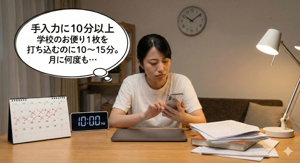 学校からのお便り1枚を打ち込むのに10〜15分。月に何度も… One school flyer takes 10–15 minutes to type. Again and again every month.